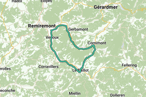 Der Grüne Weg der Vogesen (La Voie Verte des Hautes Vosges) beginnt in Cornimont. Dieser Radweg ist vollständig asphaltiert und völlig autofrei. Er führt leicht bergab nach Remiremont und anschließend leicht bergauf nach Bussang. Um die Rundfahrt jedoch vollständig zu machen, verlässt diese Route den Radweg in Le Thillot und folgt der durchgehenden Straße über den nicht allzu steilen Col du Menil (621 m.) zurück nach Cornimont. Gesamter Anstieg: ca. 230 m.