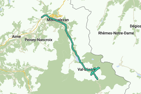 Steigen Sie von Bourg-Saint-Maurice zum Col de l'Iseran auf. Es bringt Sie auf eine Höhe von 2770 m über eine Strecke von 47,5 km. Der Höhenunterschied beträgt 1955 m. Die durchschnittliche Steigung beträgt 4,1 % mit Spitzen von 7 %.