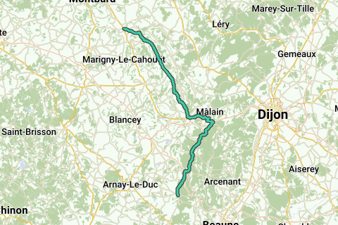 Fahrradroute von Venarey les Laumes nach Bligny sur Ouche. Die Tour führt durch die schönsten Täler des Auxois.