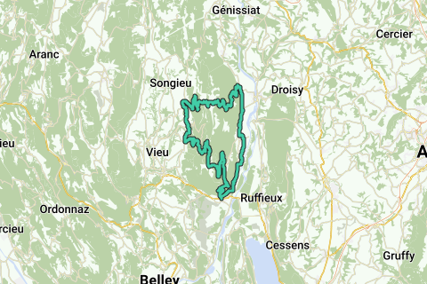 Fahrradstrecke über die Pässe Grand Colombier und Col de la Biche von Culoz