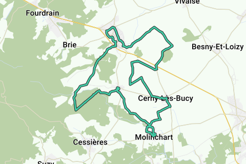 Ausgehend von Crépy, einer Stadt, die 1918 das traurige Privileg hatte, die "Grosse Bertha" zu beherbergen, führt uns dieser große Rundweg zur Entdeckung der Sandsteinkirchen dieses Teils des Laonnois: Cerny, Bucy, Molinchart. Nach einem Umweg durch den Wald von Sart-l'Abbé bietet der Aufstieg zum Mont Kennedy wunderschöne Ausblicke auf die Umgebung.