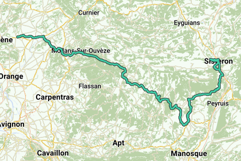 Die sechste Etappe der Paris-Nizza von Suze-la-Rousse nach Sistron. Offizielle Strecke stammt von www.letour.fr.
