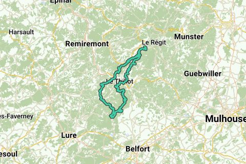 La Bresse (Rue du Hohneck) – Cornimont (via ∆ Rue Des Petites Alpes) – Les Meix Fraiteux – ∆ Col de Morbiex – ∆ Col de Morbeu – Ramonchamp – ∆ La Colline – Beulotte-Saint-Laurent – Montandré – Rexelaxert – ∆ La Grève – ∆ Les Martines – ∆ Belfahy – Les Roches – La Chevestraye – Plancher-Les-Mines – ▲Planche des Belles Filles – ∆ Col du ballon de Servance – ∆ Col de Servance – ∆ Ballon de Servance – Château-Lambert – La Courbe – Thillot – Le Ménil – La Golette – Travexin – ∆ Route des Rosiers – ∆ Col du Brabant – Les Corbeaux - La Bresse (Rue du Hohneck).