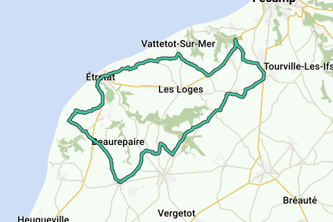 Fahrradschleife von etwa 45 km, mit Durchgangspunkt Etretat, Froberville, Vattetot sur mer ....