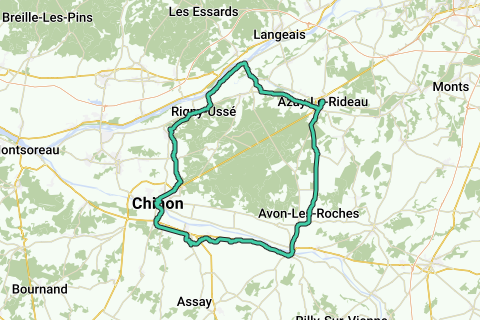 Wellenroute entlang hauptsächlich ruhiger Straßen vorbei an unter anderem den Schlössern von Ussé und Azay-le-Rideau.