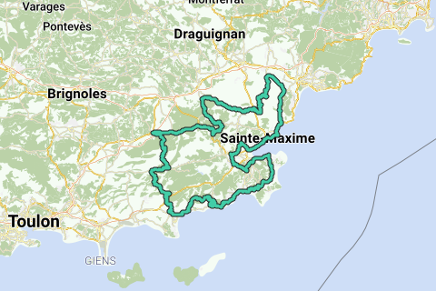 Diese Route basiert größtenteils auf der Granfondo Cannondale. Es gibt einige Varianten dieser "XL" Version: die L, M, S und XS Version. Die Route beginnt am Place des Lices in Saint Tropez, von wo aus über Ramatuelle der Col de Collebasse erklommen wird. Ein langes Zwischenstück entlang des Mittelmeeres führt schließlich zu den Füßen des Col de Canadel (von 0 auf 267 m Höhe). Schöne Auffahrt mit Blick auf das Meer. Danach folgt die schöne "Route des Crêtes". Im ersten Teil gibt es auf der rechten Seite schöne Ausblicke, unter anderem auf den Flughafen. Ungefähr auf halbem Weg biegt diese Route links nach Le Lavandou ab. Dort gibt es ein besonders steiles Gefälle und dann teilweise entlang von Radwegen und Straßen, entlang des Mittelmeeres bis Le Lavandou. Von dort aus holst du die Abfahrt wieder auf, indem du bis zur Zusammenführung der Route mit dem Endpunkt der Route des Crêtes hinaufsteigst. Der nächste Anstieg ist der 8 km lange, aber nicht steile Col de Babaou mit einer langen Abfahrt nach Collobrières (übrigens ein idealer Platz für das Mittagessen). Über die D39 geht die Route weiter zur "Notre Dames des Anges". Die Abzweigung zum Gipfel lassen wir links liegen, aber wer Lust hat, kann natürlich dort kurz auf und ab und ein paar zusätzliche Kilometer und Höhenmeter zurücklegen. Nach der langen Abfahrt nach Gonfaron geht es in Richtung La Garde-Freinet. Der erste Teil davon ist meistens leicht abfallend, und bei starkem Rückenwind kann man hier wirklich Gas geben. Der Anstieg nach La Garde-Freinet erfolgt über die D558, die ziemlich stark befahren ist, aber ausreichend sicher. Danach folgt eine sanft geschwungene Route, besonders schön und sehr ruhig, bis du die D25 überquerst. Dann folgt ein überraschend steiler Anstieg (Col de Pelgros), nach dem der Weg sich verengt und nach einem leichten Anstieg in eine nicht ungefährliche Abfahrt in Richtung Roquebrune-sur-Argens übergeht. Diese Abfahrt ist nicht steil, aber hier und da mit Kies und Sand bedeckt, was besonders in den Kurven verräterisch sein kann. Also vorsichtig sein! Nach dem gemütlichen Dorf Roquebrune geht es über die D7 und D8 bis ans Meer, mit unterwegs noch einem leichten Anstieg. Die Route folgt der D559 bis hinter Sainte Maxime, wo ein sicherer Radweg bis nach Saint Tropez beginnt, aber von dieser weicht die Route an der Kreuzung mit der D244 ab, wo noch ein Anstieg mitgenommen wird. Schließlich in Richtung Cogolin mit danach noch einem überraschend steilen Stück und so zurück nach Saint Tropez.
