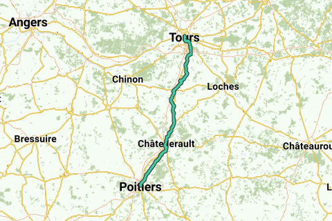 Ein Teil des Pilgerwegs "Via Turonensis", der von Tours nach Poitiers führt und Sainte-Maure-de-Touraine und Châtellerault passiert.