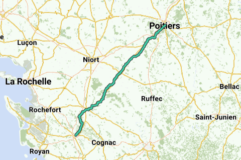 <p><a class="routeYou_embed" href="https://app.routeyou.com/de-fr/route/view/5600710?utm_source=embed&utm_medium=article&utm_campaign=routeshare&navigation=external" title="A4.2 Wandern: Via Turonensis Poitiers-Saintes - RouteYou" target="_blank"><img src="https://image.routeyou.com/embed/route/960x670/5600710-de@2x.png" style="width: 100%; height: auto;" alt="A4.2 Wandern: Via Turonensis Poitiers-Saintes"></a></p>