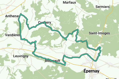 Rundfahrt für Rennrad von Champillon nach Chatillon-sur-Marne und zurück. Insgesamt fährst du etwa 60 km.
