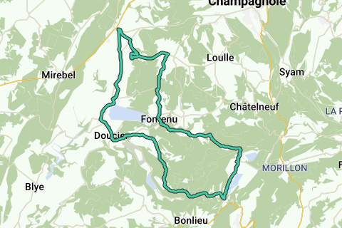 Diese 45 km lange Radroute beginnt im Dorf Doucier im Jura. Die Route führt durch die bewaldete Umgebung vorbei an verschiedenen Dörfern, darunter Monnet-La-Ville, Chevrotaine und Menétrux-en-Joux. Die Route ist perfekt, um die Umgebung des Sees und des Juragebirges zu erkunden. Unterwegs kannst du auch kurz von der alten Route abweichen, um die wunderschönen Wasserfälle am Herisson zu besichtigen.