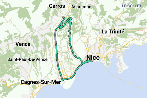 Die Radtour beginnt und endet am Jardin Albert 1er und führt dich entlang der berühmten Promenade des Anglais, bevor es entlang des Flusses Var weitergeht, um anschließend einen kurzen Anstieg nach Colomars zu machen. Danach kehrt man zum Ausgangspunkt zurück, um eventuell ein erfrischendes Bad im Meer zu nehmen.