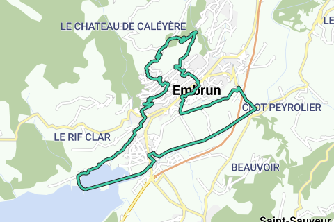 Diese Route beginnt am Ufer der Durance im Dorf Embrun, das am Lac de Serre-Poncon liegt. Der erste Teil führt entlang der Ufer der Durance zum malerischen Stadtzentrum. Dort geht der Weg noch etwas höher, aber die Belohnung ist ein wunderschönes Panorama über den Stausee. Die Route sinkt dann wieder ab und macht einen halben Kreis um den Plan d'Eau d'Embrun. Die Route hat eine Gesamtlänge von 15 km.
