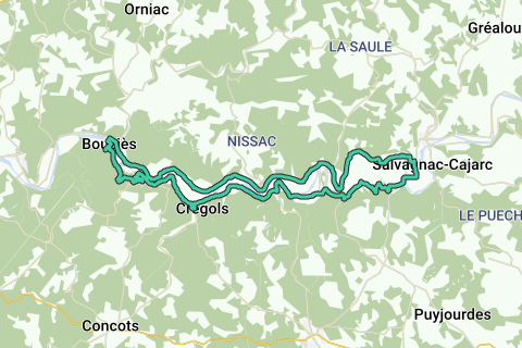 Diese Fahrradroute führt dich durch das wunderschöne Tal des Lot. Du fährst durch den Regionalen Naturpark Causses du Quercy. Genieße unterwegs die spektakuläre Naturschönheit, die dir begegnet. Die Route ist 46 km lang, sie beginnt und endet in Bouziès.