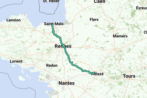 Dieser Abschnitt enthält die Strecken VPLS 04-06. Die Route macht daher einige Umwege zu Campingplätzen oder Museen (in Dinard und Châteaubriant). Schauen Sie auf die Karte, um die Schleifen zu verkürzen!