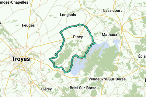 Fahrradroute von 60 km ab Laubressel in der Nähe von Troyes durch den Parc naturel régional de la Forêt d'Orient. Im ersten Teil der Route fährst du durch die Felder, danach fährst du entlang der großen Seen des Forêt d'Orient über die 'La vélovoie des Lacs'. Bevor du wieder bergauf nach Laubressel fährst, folgst du ein paar Kilometer dem befestigten Radweg entlang des Canal de Morge.