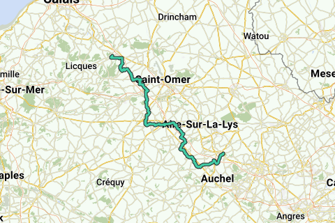 Campingplätze: in Tournehem sur la Hem, Rebecques, Lillers (siehe POI’s und Wegpunkte auf der Karte)