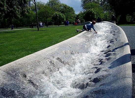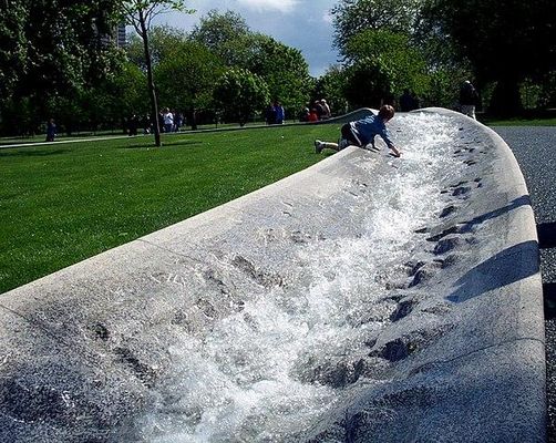 Der Brunnen wurde von der amerikanischen Landschaftsarchitektin Kathryn Gustafson entworfen und kostete 3,6 Mio. Pfund. Die insgesamt 545 Einzelteile wurden aus – aus Cornwall stammendem – Granit in Nordirland mit Hilfe einer computergesteuerten Fräsmaschine geschaffen.