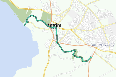 Die gesamte Wanderroute beträgt 10 km, jedoch kann der Spaziergang verkürzt werden, indem an einem der Zugangsstellen entlang der Route, einschließlich des Stadtzentrums Antrim, gestartet oder angehalten wird.
