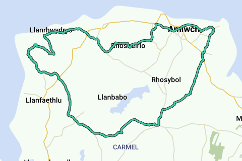 Beginnt an der Llynnon-Mühle (Erfrischungen erhältlich) und folgt dem Kupferpfad zurück zum Ausgangspunkt in gegen den Uhrzeigersinn. Parkplätze sind an der Llynnon-Mühle vorhanden, aber Vorsicht, der Parkplatz wird um 16.30 Uhr geschlossen, daher ist es am besten, direkt außerhalb zu parken.
