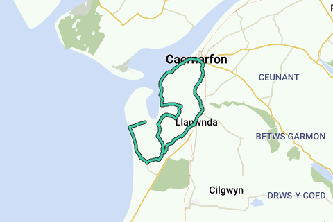 Beginnt in der Nähe des Caernarfon Golf Club, führt entlang des Foryd, dann nach Llandwrog. Es gibt dann einen optionalen Abzweig nach Dinas Dinlle, bevor es zurück geht und sich mit Lon Las Eifion verbindet, um Sie über das Caernarfon Castle zu Ihrem Ausgangspunkt zurückzubringen.