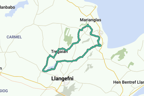 Beginnt am NE-Ende von Llyn Cefni, dann in Richtung Benllech, Marian Glas, Brynteg, bevor es zum SW-Ende von Llyn Cefni zurückgeht und den Radweg zur Rückkehr nutzt. Ein Abschnitt von etwa einer Meile ist nicht wirklich mit dem Fahrrad befahrbar (ohne Mountainbike), aber es ist einfach genug, das Fahrrad ein Stück zu schieben.
