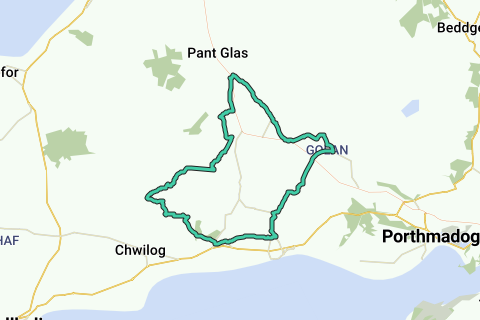 Vom Parkplatz in der Nähe von Bryncir entlang der Lon Eifion für eine kurze Strecke, dann, hauptsächlich auf ruhigen Landstraßen, durch Dolbenmaen, Golan, Criccieth (machen Sie hier eine kurze Umleitung, wenn Sie Zeit am Strand verbringen möchten), Llanystumdwy (Geburtsort von David Lloyd George), bevor Sie allmählich zum Ausgangspunkt zurückkehren. Die Hunde im Bauernhof nahe dem Ende der Schleife werden bellen und verfolgen, während Sie durch den Bauernhof gehen (der ein Wegrecht hat) - aber sie werden nicht beißen! 19 Meilen