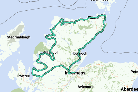 Die North Coast 500-Route ist die schottische Antwort auf die Route 66. Diese 800 Kilometer lange Küstenroute erstreckt sich entlang der Nordküste der Highlands und umfasst die besten Teile dieser glorreichen Region. Die Route beginnt in der nördlichen Stadt Inverness, schlängelt sich dann entlang der Westküste nach Applecross und weiter nordwärts zu den pulsierenden Städten Torridon und Ullapool. Von dort aus geht es zu einigen der nördlichsten Küstenpunkte Schottlands, vorbei an Caithness und John o' Groats, bevor es wieder südwärts geht über Dingwall und schließlich zurück nach Inverness. Für weitere Informationen, siehe diesen Link: https://www.visitscotland.com/blog/scotland/north-coast-500/