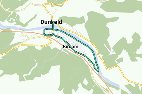 Der Hinweg führt vorbei an der alten Birnam-Eiche. Sie steht zusammen mit anderen bemerkenswerten Bäumen an einem schönen Abschnitt des River Tay. Die Route führt zurück durch das Dorf Birnam mit schönen historischen Gebäuden und einem Beatrix-Potter-Garten. Quelle: http://https://www.walkhighlands.co.uk/perthshire/birnam.shtml