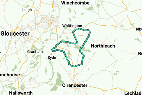 Möchten Sie Ihre Auswirkungen auf die Umwelt verringern? Nutzen Sie den öffentlichen Nahverkehr (Bahnhof Chedworth Halt). Es gibt einige steile Anstiege auf dieser Strecke (aber erfahrene Radfahrer werden wahrscheinlich darüber lachen). Es gibt wenig (keine) Chance, dass Sie entlang dieser Route Autos sehen werden. Eine Sehenswürdigkeit entlang dieser Strecke: RAF Chedworth. Wenn ich diese Strecke zusammenfassen müsste: eine schöne Fahrt für einen erfahrenen Radfahrer.