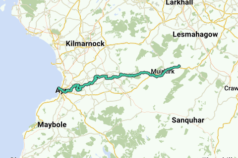 River Ayr Way: von der Quelle bis zur Mündung. Viele Praktiker des Bergwanderns und anderer verwandter Aktivitäten sind sich wahrscheinlich bewusst, dass der Fluss auf über 90 % seiner Länge mit einem Weg versehen ist. Aufgrund von Streitigkeiten mit Grundstückseigentümern und Wetterschäden wird der Weg an einigen Stellen vorübergehend aufgegeben. Der Weg beginnt im ehemaligen Dorf Glenbuck, das jetzt ein Opfer des Braunkohletagebaus und des allgemeinen Industrieschwunds ist. Er folgt dem Fluss von seiner Quelle am Glenbuck Loch und endet in der Küstenstadt Ayr, wo der Fluss in den Ozean an der Mündung des Clyde mündet. Typischerweise wird der Weg in 2 oder 3 Etappen gemacht.