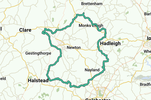 Diese Radtour lässt Sie die schönsten Radwege in Sudbury genießen. Es gibt wenig (keine) Chance, dass Sie entlang dieser Strecke Autos sehen werden. Diese Strecke ist sicherlich nicht flach. Möchten Sie die Umweltbotschaft vermitteln? Nutzen Sie den öffentlichen Nahverkehr (Bahnhof Long Melford), um zu dieser Radtour zu gelangen. Bewundern Sie die beeindruckenden Sehenswürdigkeiten entlang dieser Route, einschließlich des Borley Rectory. Eine großartige Tour!