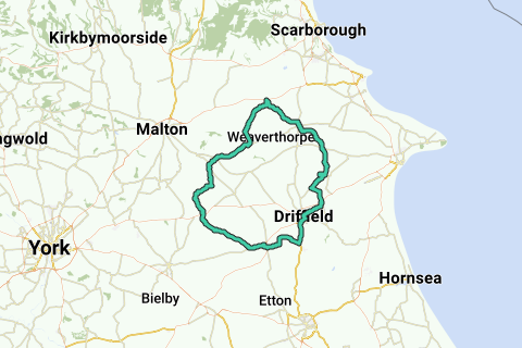 Es gibt wenig (keine) Chance, dass Sie entlang dieser Route Autos sehen werden. Viel Asphalt entlang dieser Route. Bewundern Sie die atemberaubenden Sehenswürdigkeiten entlang dieser Route, einschließlich der Yorkshire Wolds. Eine großartige Route mit den besten malerischen Straßen in schneller Folge. Nehmen Sie sich Zeit für diese Route.