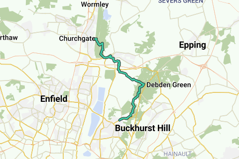 Etappe 2 beginnt am Bahnhof Cheshunt, Endpunkt der Überlandlinie Liverpool Street nach Cheshunt, und endet am Bahnhof Chingford, Endpunkt der Überlandlinie Liverpool Street nach Chingford.
