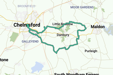 Diese Radtour führt dich entlang der ruhigen Straßen und grünen Felder östlich von Chelmsford. Die Straßen sind ideal zum Radfahren, was diese Route zu einer idealen Möglichkeit macht, dem ganzen urbanen Trubel zu entkommen.
