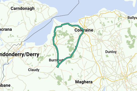 Diese Rennradroute führt dich durch Binevenagh Areo von außergewöhnlicher natürlicher Schönheit. Unterwegs kannst du dich auf eine abwechslungsreiche Landschaft mit weiten Wiesen, Wäldern und beeindruckenden Bergen freuen. Du kommst auch an zahlreichen hübschen Dörfern vorbei, wo du eine kurze Pause einlegen kannst. Die Fahrt wird ein reines Vergnügen!