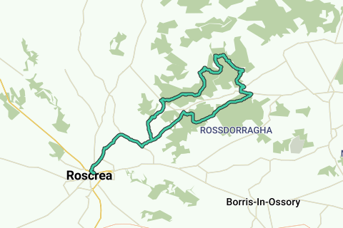 Erkunden Sie die malerische Gravelbikeroute in Gorteen in der Nähe von Roscrea Castle in Leinster. Verpassen Sie nicht das Roscrea Castle, Roscrea und das Roscrea Friary auf dem Weg!
