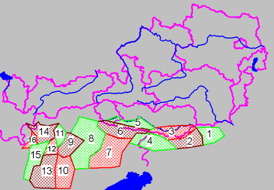 Geologisch gehören sie größtenteils zu den sogenannten Südalpen , beinhalten nach geographischer Definition aber auch den Drauzug sowie die nördlichen Karawanken . Beide letztgenannten Gebirgszüge liegen nördlich der periadriatischen Naht, gehören somit geologisch zu den Ostalpen und müssten streng genommen zu den Nördlichen Kalkalpen gezählt werden, von denen sie jedoch durch die gesamte Breite der Zentralalpen getrennt sind.