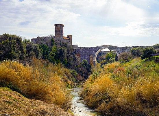 Die Brücke führt in 30 Meter Höhe über den Fluss Fiora zur mittelalterlichen Burg Castello dell’Abbadia. Die Burg, ein ehemaliges Zisterzienserkloster, beherbergt heute das archäologische Museum von Vulci, in dem Bodenfunde aus etruskischer Zeit, unter anderem seltene schwarze Bucchero-Tongefäße, ausgestellt werden.