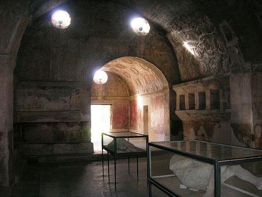Pompeji war eine antike Stadt in Kampanien am Golf von Neapel, die wie Herculaneum, Stabiae und Oplontis beim Ausbruch des Vesuvs im Jahr 79 n. Chr. verschüttet wurde, unter der Vulkanasche aber weitgehend konserviert blieb.