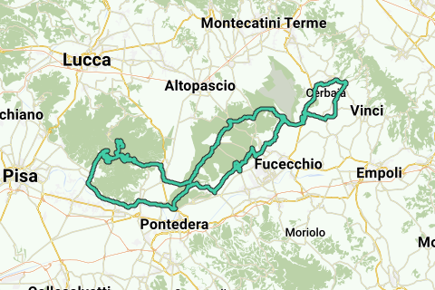 Unten kommst du auf einen relativ belebten Rückweg, den wir über 12 km folgen, aber an der Nissan-Werkstatt verlassen wir diesen schnell nach 79 km, um über ruhigere Straßen die Rückfahrt nach Lamporecchio fortzusetzen.