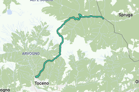 Man erreicht die Ortschaft Promez in Toceno und biegt auf Höhe der letzten Häuser in den Saumpfad (Weg M25 – SI – GTA) ein, der zur Colma di Toceno (Colma di Fuori) führt und durch einen Nadelwald verläuft. Nach dem Verlassen des Waldes steigt man auf die Wiesen und erreicht die Hütten der Alpe, von wo aus man einen der bezauberndsten Ausblicke ins Tal bewundern kann. Bei Erreichen einer breiten Piste biegt man nach links ab und geht bis zur Colma di Dentro, von wo aus man die Aussicht auf das Tal von Arvogno, die Pioda di Crana und die Scheggia genießen kann. In der Nähe einer restaurierten Hütte beginnt ein Weg, der nach Osten in der Ebene zwischen Rhododendren und jahrhundertealten Lärchen zur Piana di Vigezzo führt. (Dieser Abschnitt des Weges von Promez zur Piana di Vigezzo kann mit der Seilbahn überwunden werden, die von der Ortschaft Prestinone hinauffährt).