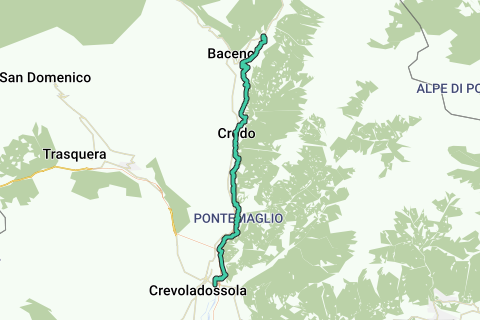 Die vorgeschlagene Route ist nur mit dem Mountainbike machbar und führt das Antigorio-Formazza-Tal entlang von Wegen, Feldwegen und wenig befahrenen Nebenstraßen hinauf. Die Strecke verläuft im Talboden und durchquert verschiedene Dörfer sowie landschaftlich und historisch-künstlerisch interessante Orte. Die zahlreichen Übernachtungs- und Gastronomieangebote im Tal ermöglichen es, die Länge der Etappen je nach eigenem Trainingsniveau zu wählen.