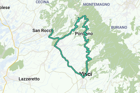 Über Vinci (Geburtsdorf von Leonardo da Vinci) nach San Baronto. Schöner Anstieg von 12 km, durchschnittlich 3 Prozent.