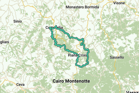 Fahrradroute rund um den Parco Regionale di Piana Crixia.