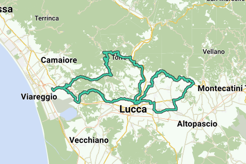 Diese Route bietet eine Mischung aus historischen Dörfern, steilen Anstiegen und atemberaubenden Aussichten über die toskanischen Hügel. Der Aufstieg nach Monte San Quirico, die Durchfahrten durch Collodi und der herausfordernde Anstieg nach Chiatri sorgen für eine unvergessliche Tour. Egal, ob du die Ruhe der Landschaft oder die historischen Sehenswürdigkeiten in Lucca genießt, diese Fahrt durch die Toskana ist eine, die du nie vergessen wirst.