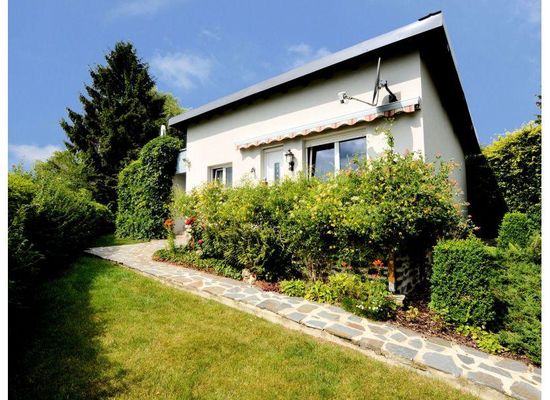 Stellen Sie sich vor, Sie sitzen bereits auf der Terrasse dieses Bungalows mit Blick auf die Hügel im Norden Luxemburgs. Natürlich mit einem schönen Glas in der Hand, zum Beispiel einem echten Luxemburger Wein aus dem Moseltal. Abends, wenn die Sonne langsam untergeht, fällt noch deutlicher auf, wie ländlich man sich hier im Weiler Boevange-Clervaux befindet.
