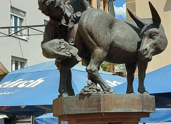 Wenn man genau hinschaut, sieht man den Esel überall in der Stadt. Der bekannteste ist der Eselsbrunnen in der Fußgängerzone mit vier fröhlich tanzenden Eseln. Zu besonderen Anlässen gibt es kein Wasser, sondern Bier aus dem Brunnen. Sie werden auch einen Esel auf einem Kirchturm sehen (anstelle eines Wetterhahns), begleitet vom Heiligen Nikolaus an der Ecke einer Fassade und einem Esel, der Dukaten kotet (anstelle einer Gans, die Eier legt). Es gibt auch jedes Jahr eine große Parade, die dem Esel gewidmet ist.