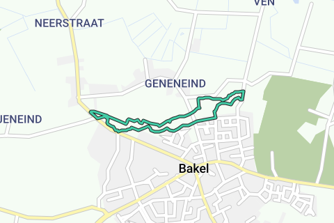 Der Ausgangspunkt des Rundwanderwegs befindet sich beim Kaffeekeller Buitenuit Neerstraat 2A in Bakel. Es gibt einen großen Parkplatz. Der Rundweg führt durch das Waldgebiet nördlich von Bakel. Das Gebiet bestand früher aus Sanddünen, die später aufgeforstet wurden. Die gesamte Route verläuft über Sand- und Waldwege. Schon bald nach dem Start der Wanderung treffen Sie links auf einen typischen jahrhundertealten Hohlweg. Weiter führt die Route durch die Wälder über schöne Hügelchen, die früheren Sandverwehungen. An mehreren Stellen gibt es einen schönen Ausblick auf die Felder. Auf halber Strecke liegt die Zandseberg. Eine schöne Sandneigung für Kinder. Quer durch den Wald verlaufen historische Kirchwege. In der fernen Vergangenheit führten diese Wege direkt von den Feldern zur Kirche in Bakel. Durch die Wälder führt die Route unter anderem über den Theo van Dijk-Weg zurück zum Ausgangspunkt. An verschiedenen Punkten kann die Route abgekürzt werden. Am Ausgangspunkt befindet sich das Kaffeehaus Buitenuit für einen Snack und ein Getränk. Außerdem gibt es hier einen schönen Spielplatz für die Kinder.