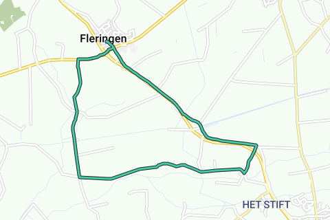 Von Fleringen (Parken bei der Kirche) entlang der N343 bis zu den Vier Winden. Rastpunkt bei Eetcafé Antje und Billie. Durch Wiesenlandschaften mit schönen Ausblicken zurück nach Fleringen.