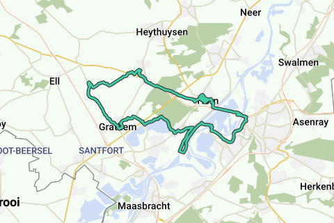 Die Route führt weiter über die Maasplassen, die du mit einer Fähre überquerst. Danach fährst du nacheinander durch das Naturschutzgebiet Beegderheide und das Dorf Grathem, wo du erneut an einigen Schlössern und einer Mühle vorbeikommst.